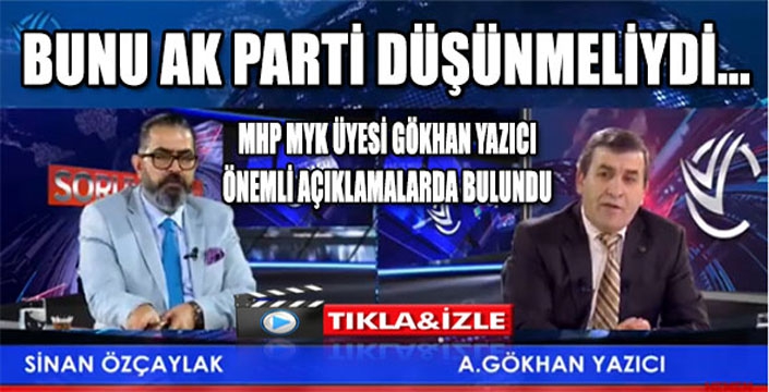 MHP MYK üyesi Ahmet Gökhan Yazıcı SoruYorum programının konuğu oldu. Eleştirilere cevap veren Yazıcı önemli açıklamalarda bulundu.