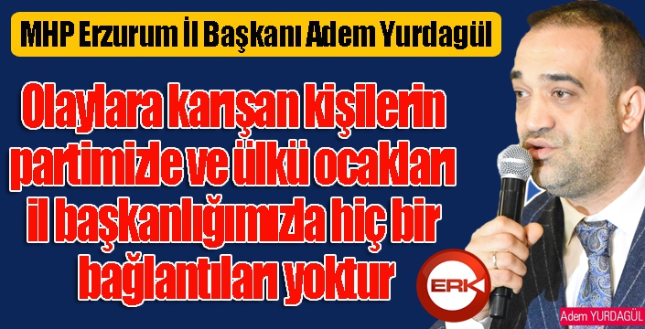 ERKHABER / ERZURUM - Milliyetçi Hareket Partisi Erzurum İl Başkanı Adem Yurdagül, İstanbul Büyükşehir Belediye Başkanı Ekrem İmamoğlu'nun olaylı mitingine ilişkin açıklamalarda bulundu. Yurdagül, '' Parti liderleri şehrimize gelerek seçim çalışmaları kapsamında mitinglerini sağlıklı, huzur içerisinde ve her hangi bir güvenlik zafiyetine uğramadan gerçekleştirebiliyor. Fakat provakatif söylemlerle halkı ayrıştırmaya, gerçek olmayan bir mağduriyet arkasına sığınmaya çalışanlar bugün şehrimizde Erzurumluları hedef alarak kendilerini haklı çıkarma gayesi taşımaktadırlar'' dedi.