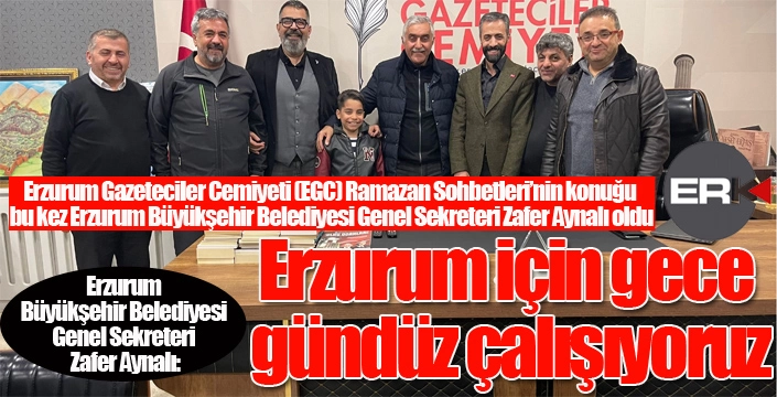 ERKHABER / ERZURUM - Erzurum Gazeteciler Cemiyeti (EGC) Ramazan Sohbetleri’nin konuğu bu kez Erzurum Büyükşehir Belediyesi Genel Sekreteri Zafer Aynalı oldu. Sohbette, Erzurum’un altyapı çalışmaları, belediyenin yürüttüğü projeler ve şehrin geleceğine dair önemli konular ele alındı.